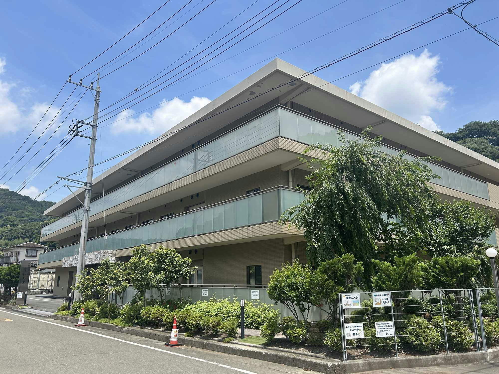 四季折々の風景が楽しめる、緑に囲まれた環境に位置する、鉄筋コンクリート造3階建ての施設で、3階まで吹き抜けの中庭がある、開放感のある設計です。