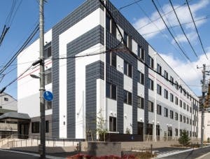 - 白と灰色のツートンカラーの建物