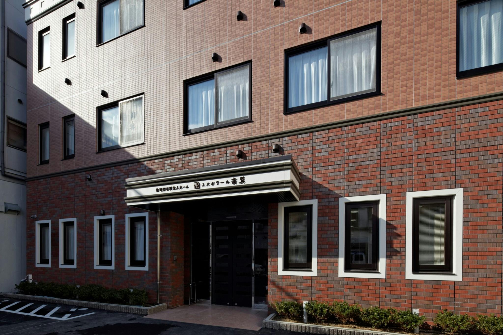 大阪市平野区にあるエスポワール南巽は、レンガ造りのような茶色をベースとした落ち着いた色合いの建物の住宅型有料老人ホームです。