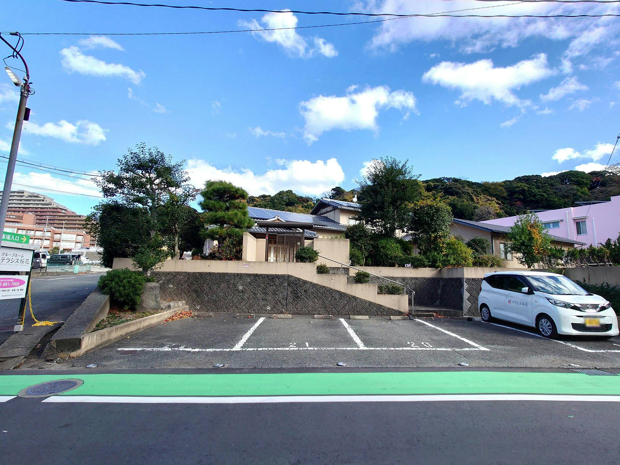 福岡市営地下鉄空港線「蛭浜駅」下車後徒歩10分のところにあるグループホームテラシス桜花は、街中のにぎやかで便利な場所にあるグループホーム。