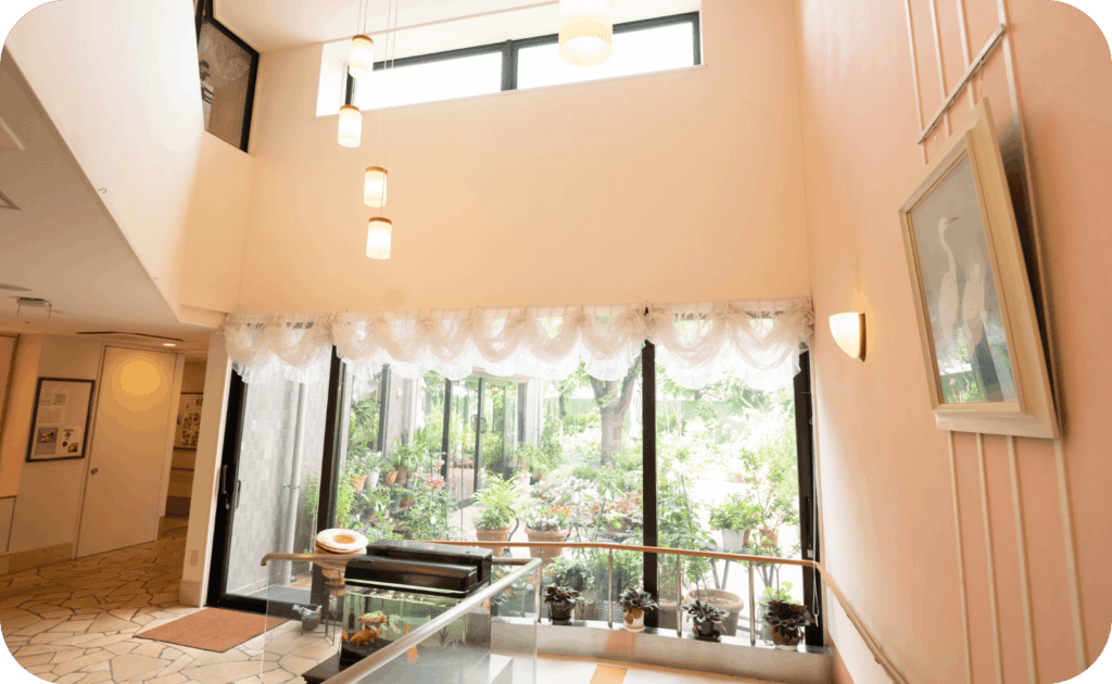 - 吹き抜けで天井が高く明るいエントランスホール