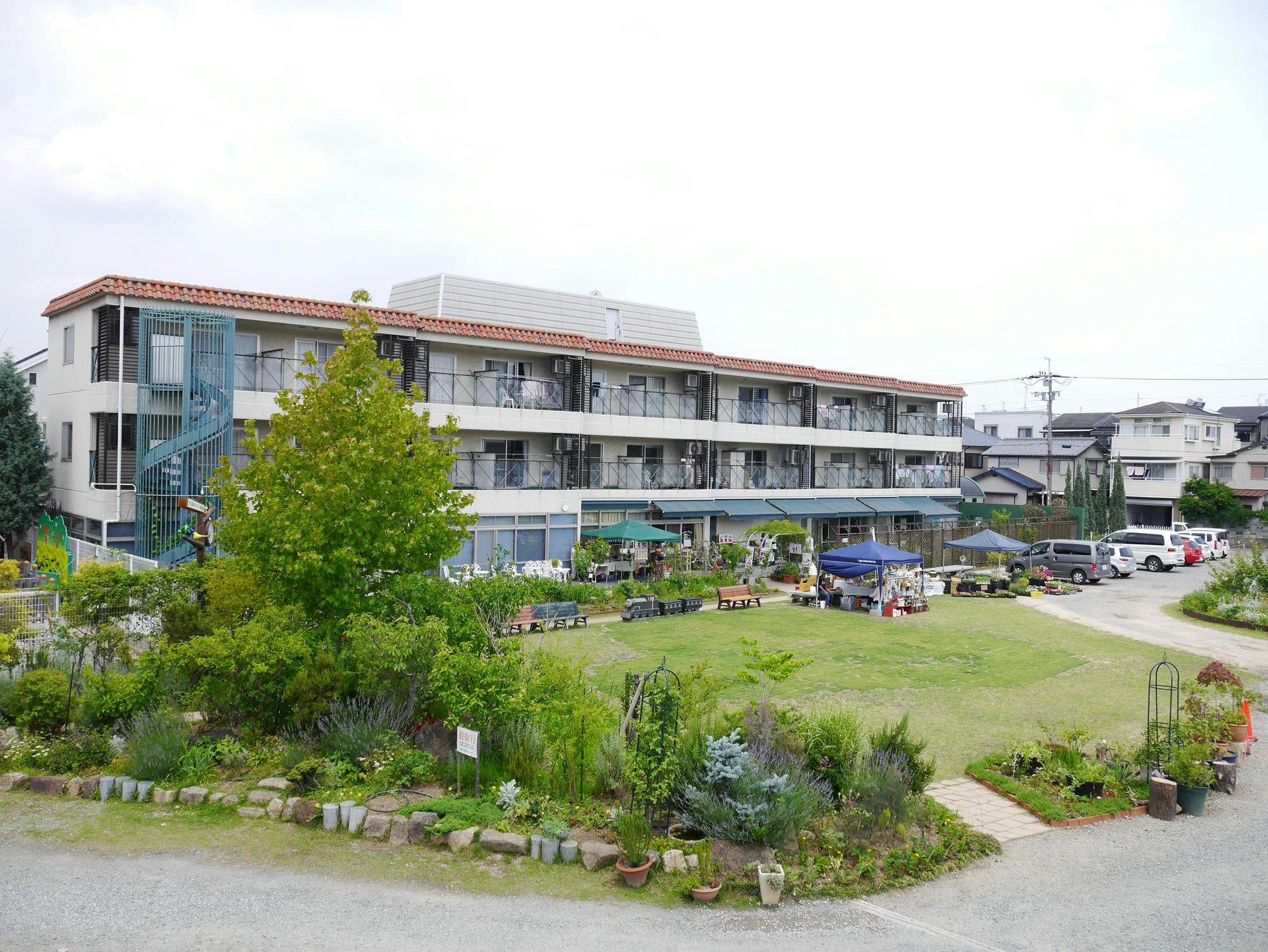 JR高槻駅より車で約5分。高槻市東和町の淀川に近い広い敷地内に建つのは、株式会社クオリティが運営する高齢者施設のコットンクラブです。