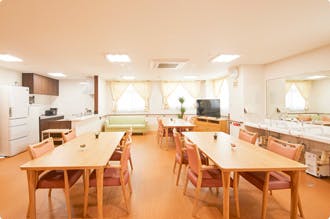 ナースコールも設置されているため、何かあった時にはすぐにスタッフが駆けつけてくれます。共有の食堂は誰でも利用できるスペースで、食事以外の時にもみんなが集まりやすい環境。
