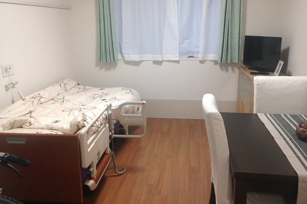 - 夜間有人居室トイレ付き備え付き家具付き看取り対応可機械浴・特殊浴