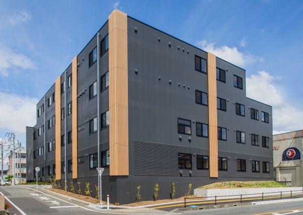 - グレーを基調とした3階建ての建物