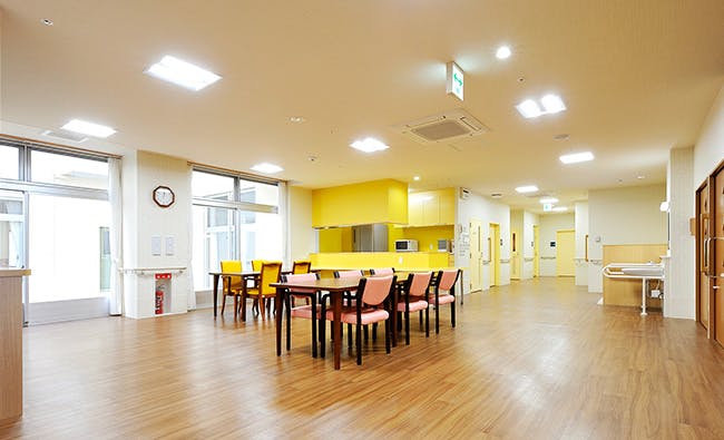 各ユニット(ねね・太陽・大地)には、広々とした居間と食堂が設けられており、入居者が穏やかな時間の中で食事や団らんを楽しむことができます。