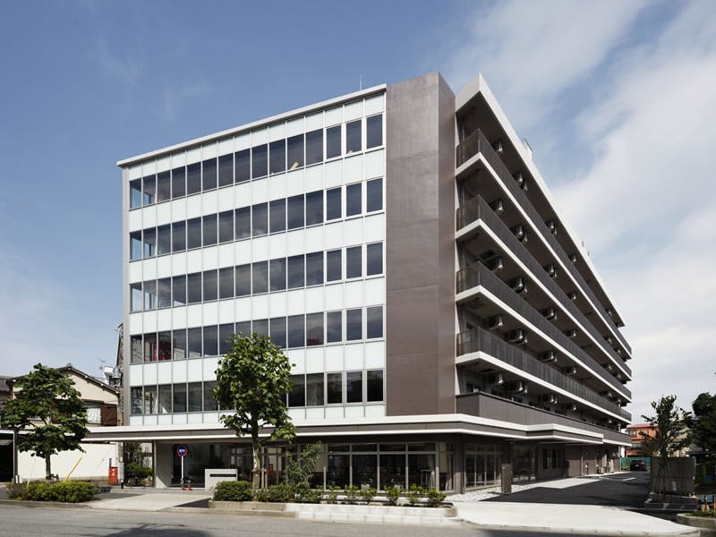 - 窓の多い6階建ての施設