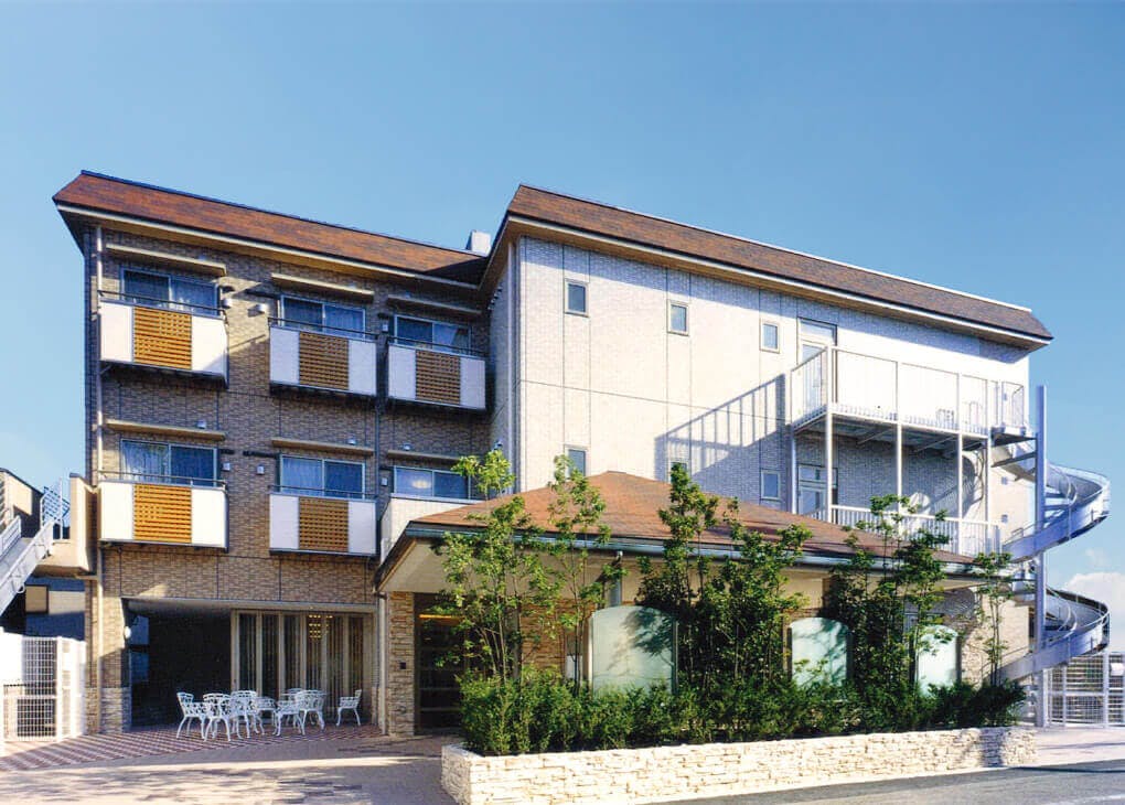 施設は地上3階建て、レンガ調のレトロな外観で、内装には清潔感があります。