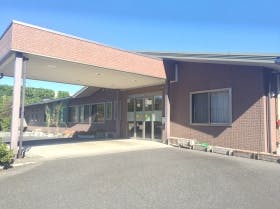 施設は平屋建てで、玄関周辺には四季折々の植物が植えられています