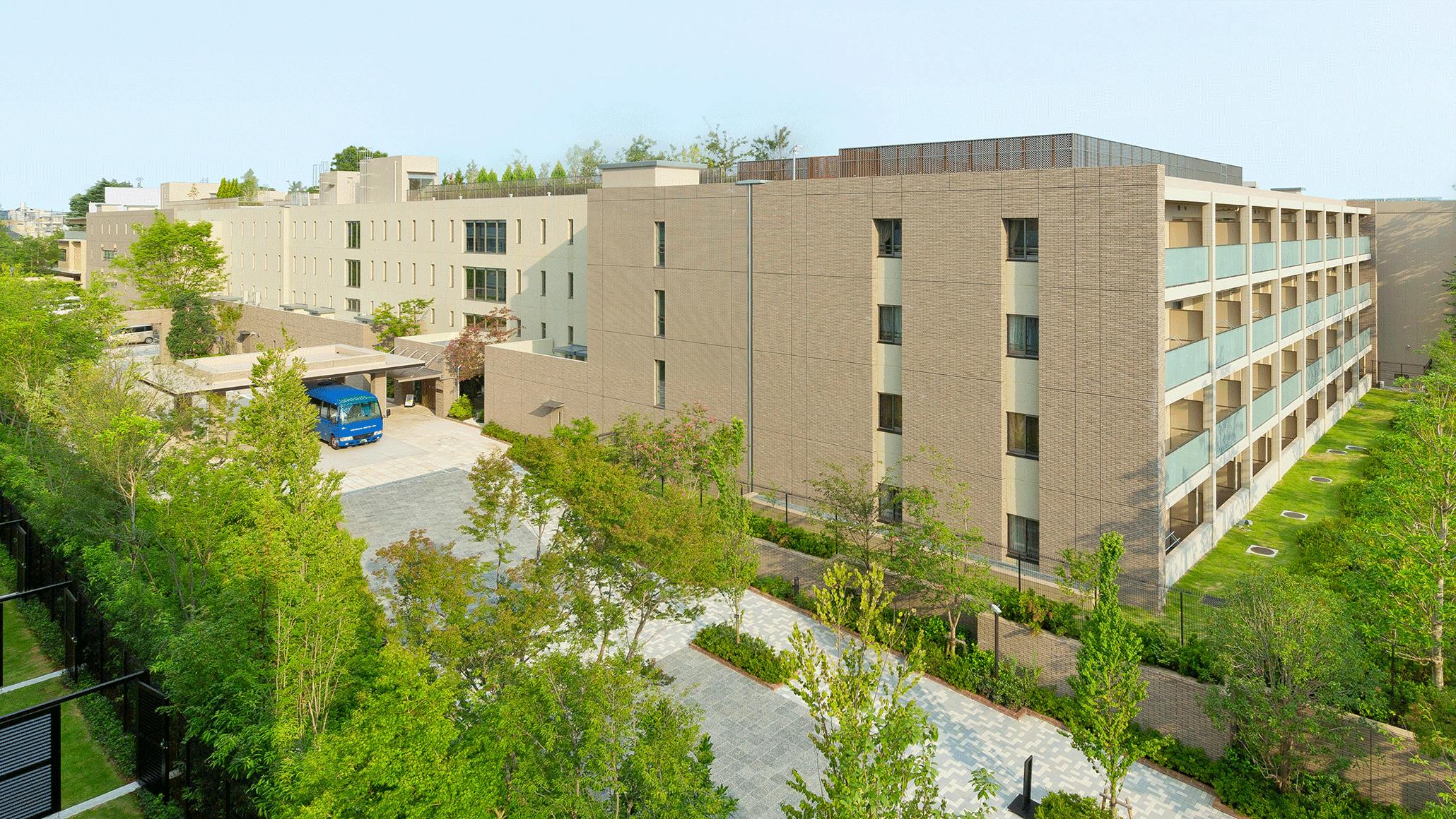 東急田園都市線用賀駅より徒歩15分、緑豊かな広大な敷地の一角に立地。