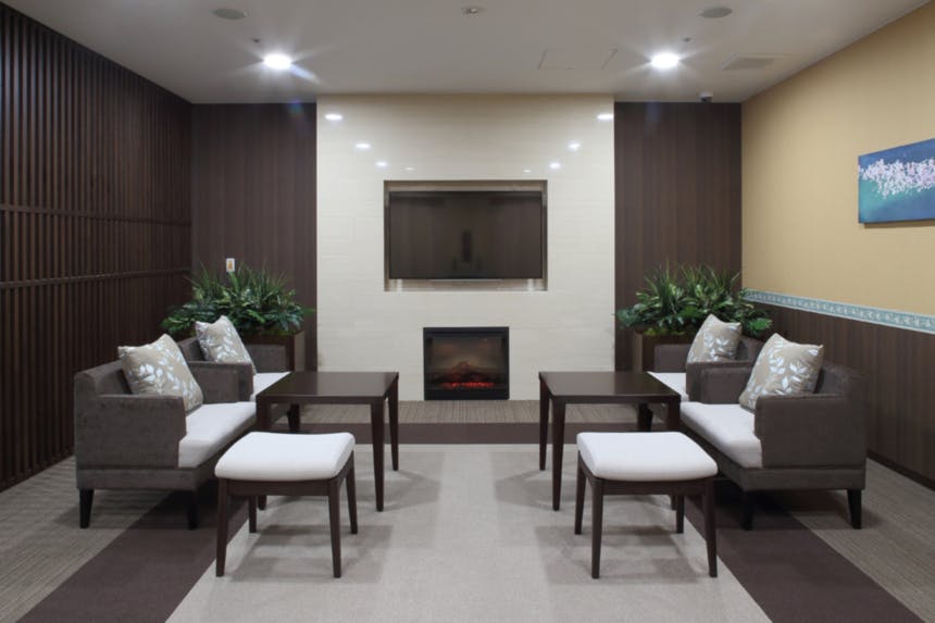 - 暖炉風にデザインされたラウンジ