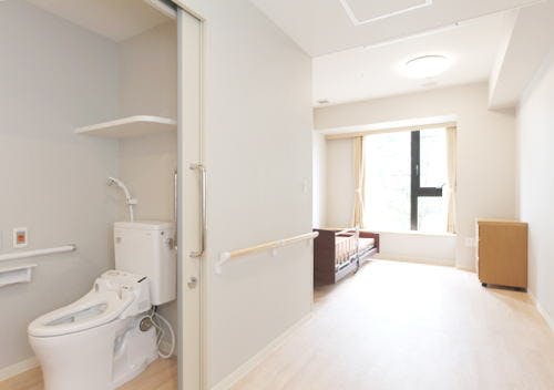 トイレ(引き戸)、酸素配管(10室のみ)、介護用電動ベッド、洗面台、加湿機能付エアコン、ナースコール、クローゼット、テレビ回線