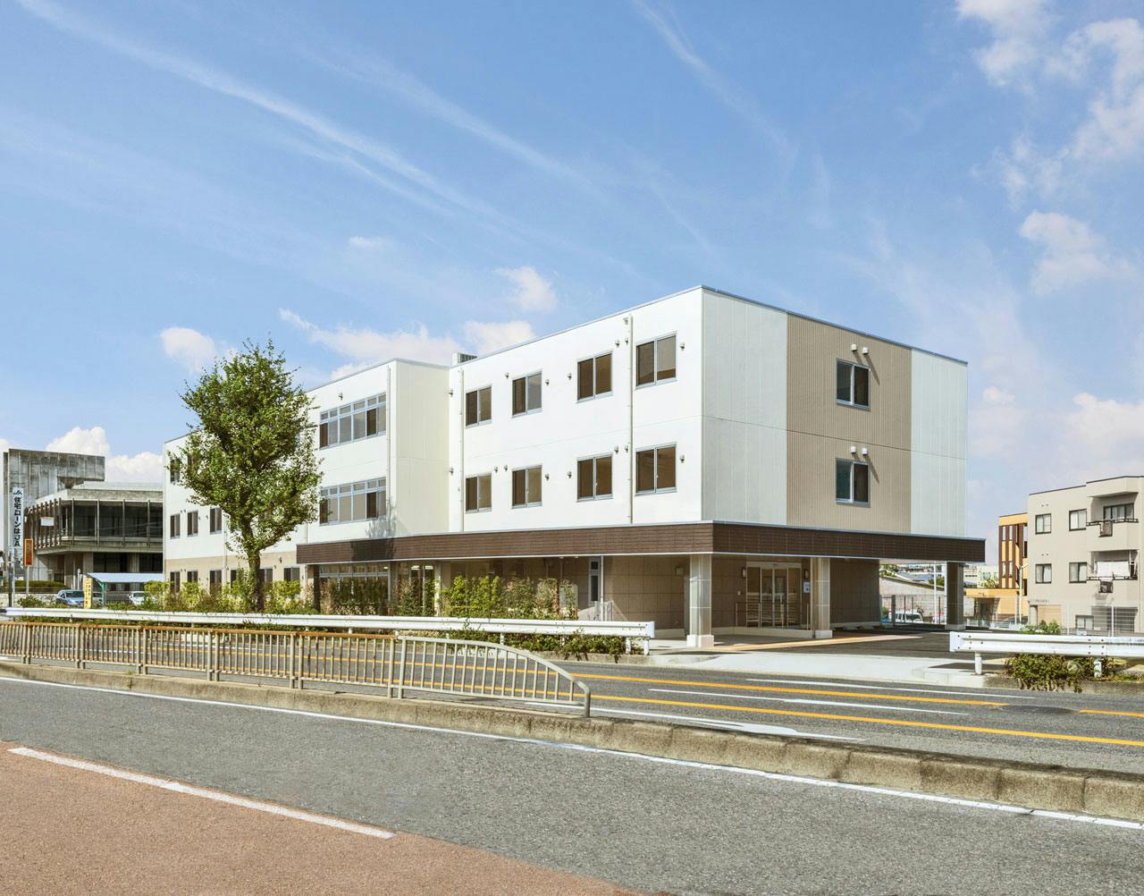 - 県道221号線沿いにある3階建ての建物