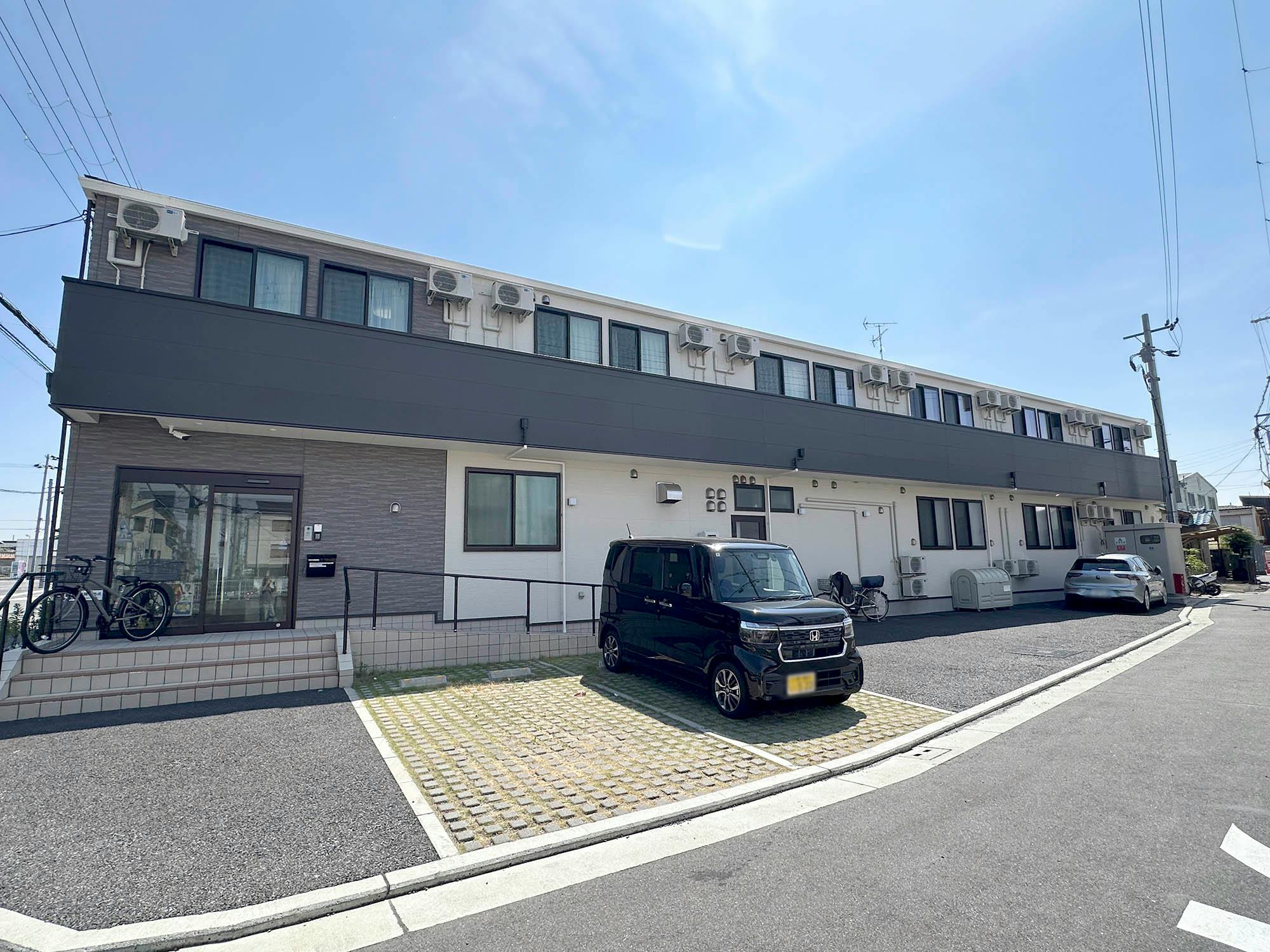 のどかな街並みに囲まれた静かな環境にあり、2022年8月30日に竣工した木造2階建ての建物です。