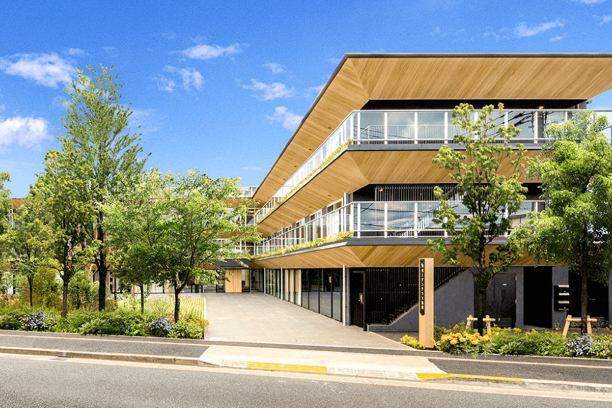中庭には60種類540本もの樹木が植えられていて、利用者から「もりの広場」として親しまれる場所です。2020年のグッドデザイン賞に選ばれた美しい建物は、生活する利用者の心を落ち着かせ、より豊かで健やかな気持ちにさせてくれます。