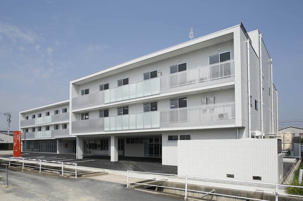 白を基調とした外観で妹尾駅から徒歩5分の介護対応型サービス付き高齢者向け住宅です。