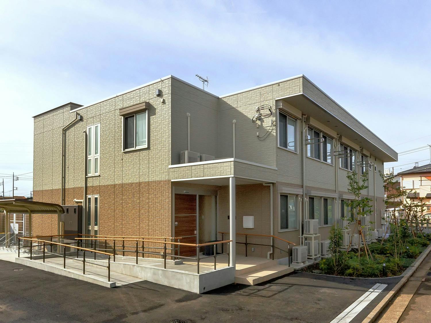 - 閑静な住宅街にある2階建ての施設