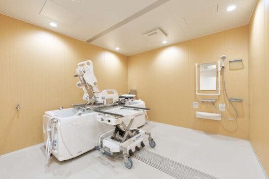 - 寝台タイプの機械浴で安心して入浴ができる機械浴室