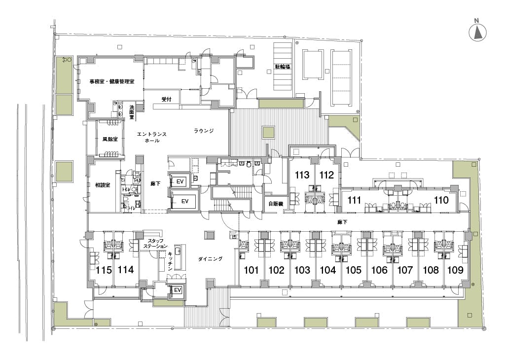 | 共用施設設備 | 機能訓練エリア、ダイニング(4F)、相談室、屋上庭園、ファミリールーム、個浴、機械浴室、駐車場、エレベーター | |