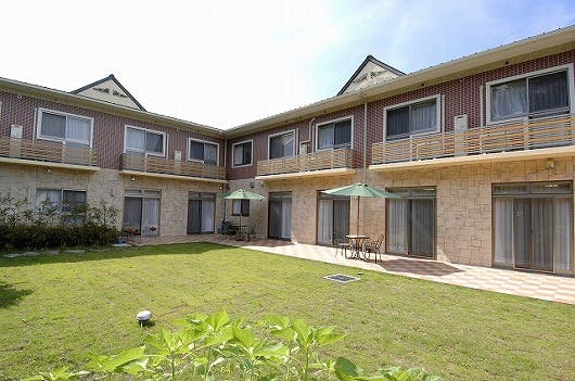 施設には広い中庭があり、テラスで日光浴や芝を散歩もできます。