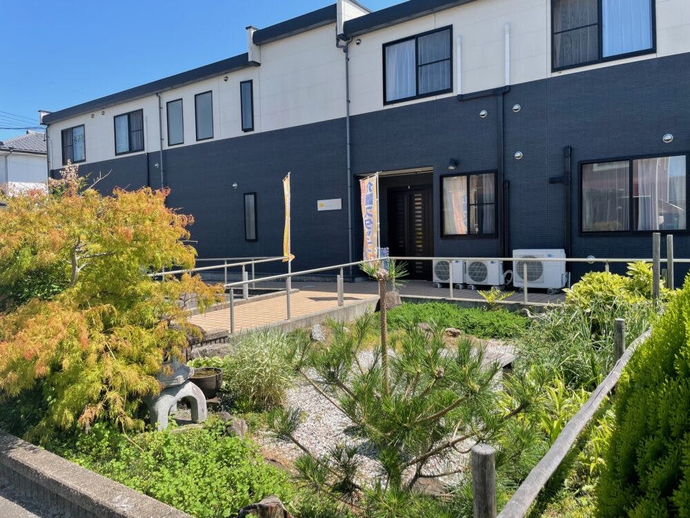 - 緑に囲まれた2階建ての施設