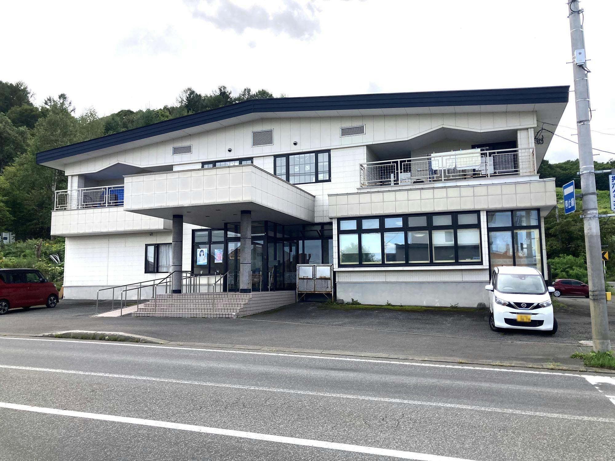 隣はスキー場、自然がすぐそばにあってしずかな感じだか、目の前が道路で割と車も通る