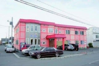 施設の外観は目を引くピンク色。