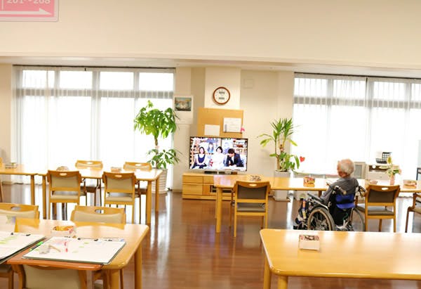テレビが設置されているため、入居者同士やスタッフとのコミュニケーションが弾む場所。