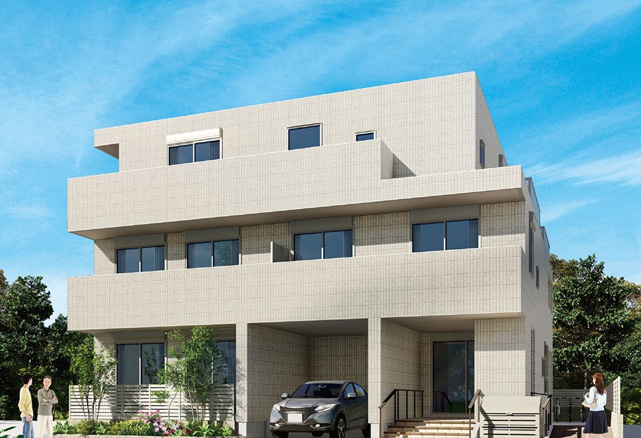 利便性の高い街に位置する3階建ての住宅