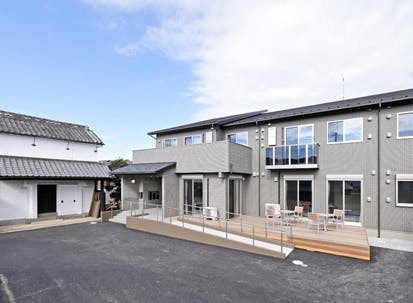 | 共用施設設備 | 玄関風除室、エントランスホール、フロント、厨房、リビングダイニング、多目的ライブラリースペース、リラクゼーションコーナー、ウッドデッキテラス、トイレ、エレベーター、スプリンクラー、自動火災報知設備、火災通報装置、階段、駐車場、駐輪場 | |