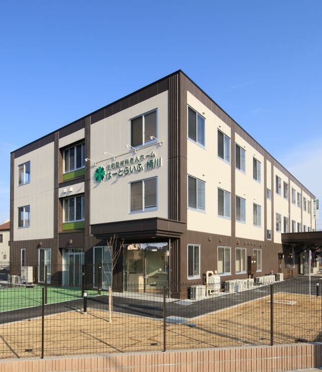 はーとらいふ桶川は、ホーム内にデイサービスや訪問介護事業所などを併設。