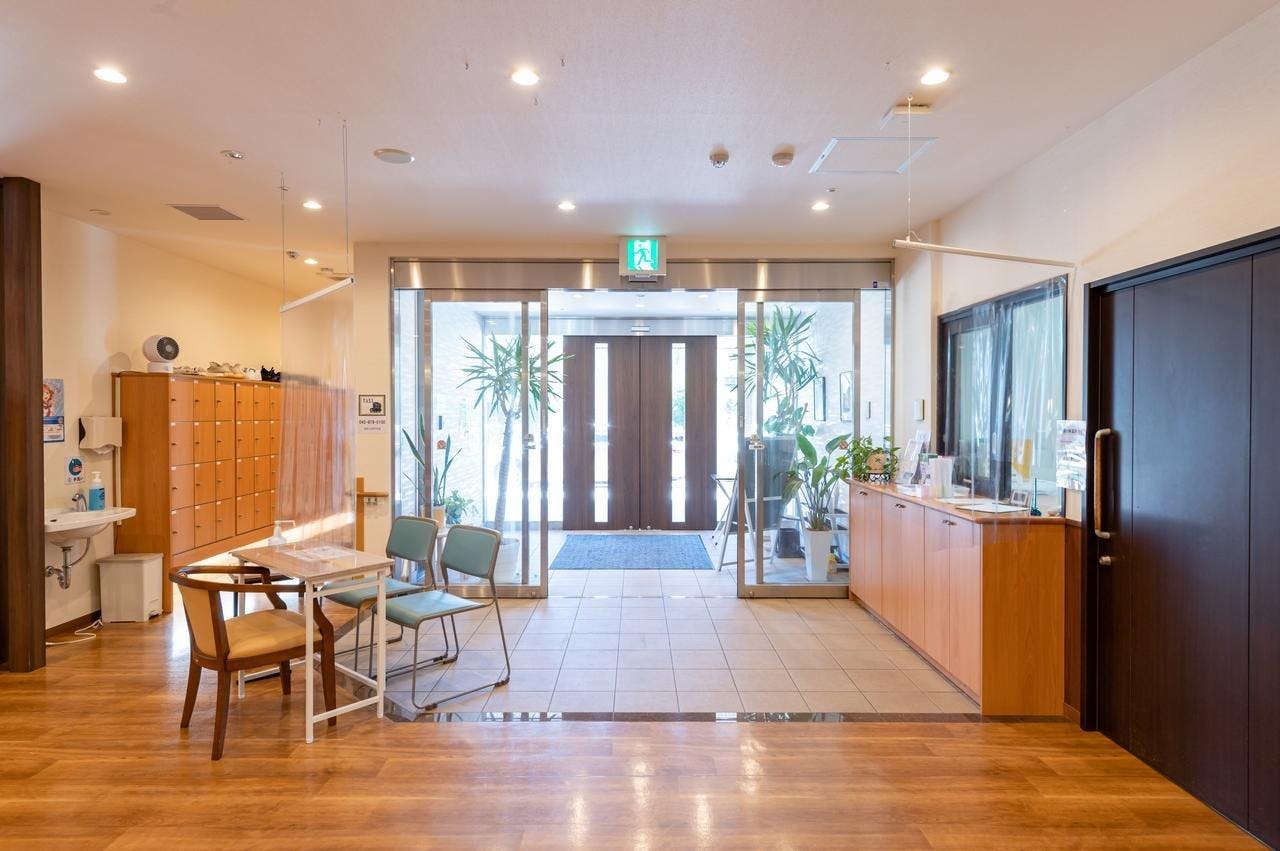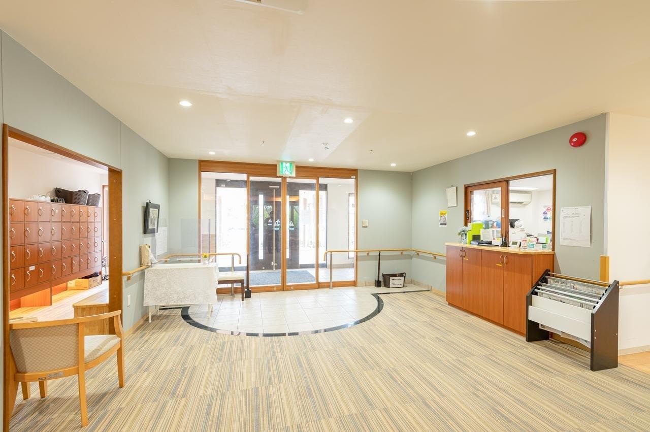 平成28年11月開設のロイヤルレジデンスあざみ野。 玄関前は段差が無くフラットなので車の横付けがしやすく、乗り降りがしやすい設計です。 駐車スペースがあるため、車で来る家族が訪れやすいのも利点です。 入口にはベンチや洗面台を設置。 靴を脱いですぐに手が洗える...