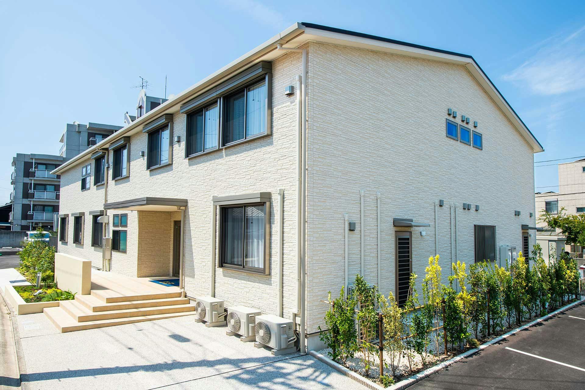 庄内通駅から車で8分、庄内川の緑地がほど近い住宅地に位置しています。 2017年に建てられた鉄骨造り3階建ての建物は、1・2階部分が居住スペースです。 入居定員は21名、7名ずつ3つのユニットに分かれて暮らしを営みます。 一般的な9名ごとのユニットと比較し当ホ...